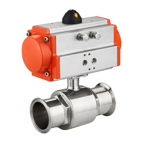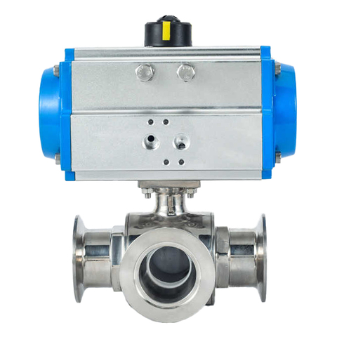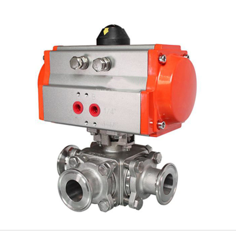 Válvula de bola de vacío tipo L/T de tres vías neumática SS304/316, abrazadera neumática, válvula de bola sanitaria neumática de vacío