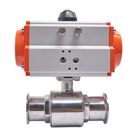 Válvula de bola de vacío neumática de tres piezas SS316, abrazadera neumática, válvula de bola sanitaria neumática de vacío